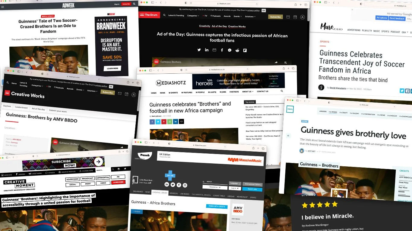 The story of two football fanatic brothers. One brother brings the game to life for everyone around him, despite being blind. Showing us that in football, as in life, it’s not just about what we see, but what we feel. To create “Brothers” in the most authentic way possible we cast Miracle, a blind lead actor. He brought his magnetic personality and unique perspective to the film. Ad of the day in Campaign and The Drum and 5 stars in David Reviews.