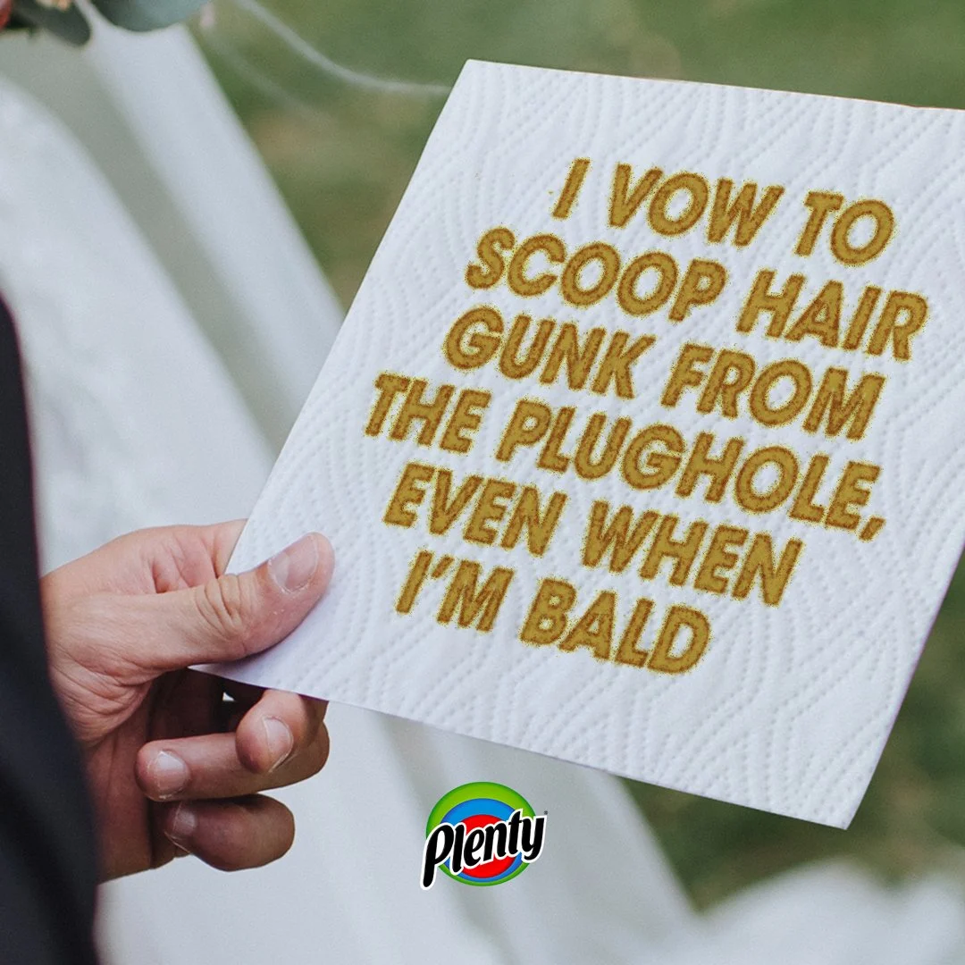 Traditional wedding vows haven’t changed in over 1,000 years. Yet a recent study from Harvard found that 25% of divorces are due to “disagreements over housework”. We asked real couples to change their wedding vows and include a commitment to cleaning. The couples were married at world-famous Kew Gardens in an all-expenses paid ceremony. Helping kitchen towel brand Plenty reframe cleaning from something mundane to a romantic act of love.