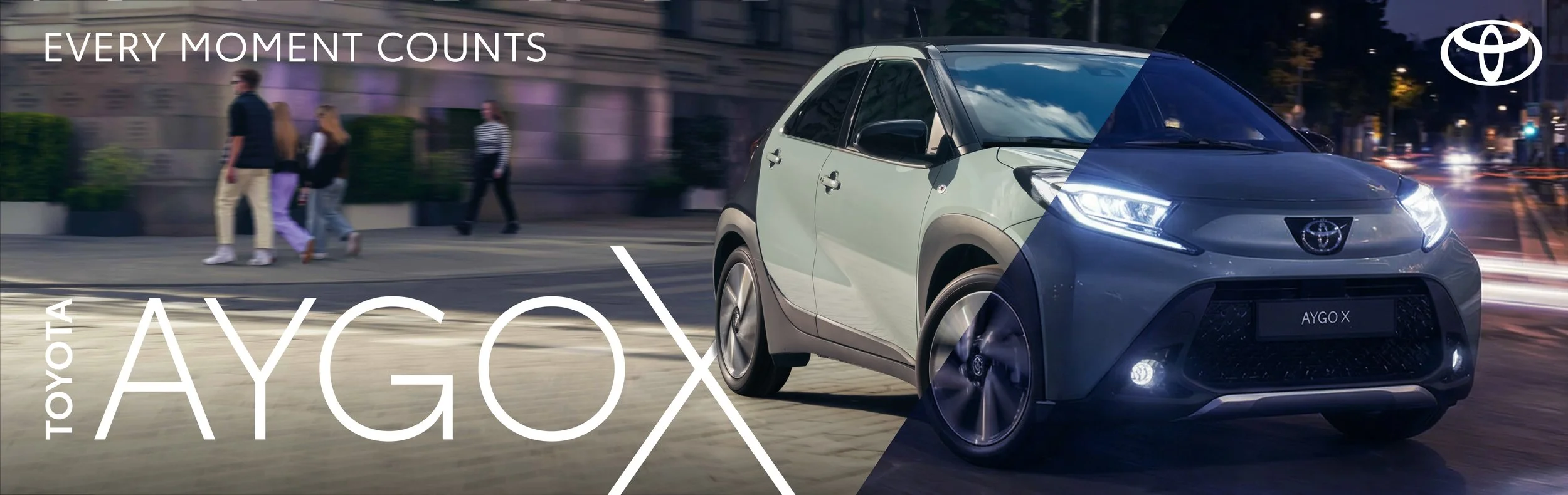 The Aygo X is a perfect car to share in a family, meaning it can lead a double, day and night, depending on who is driving it. This was a low budget campaign that had to use the Toyota ‘Every X Counts’ brand platform.