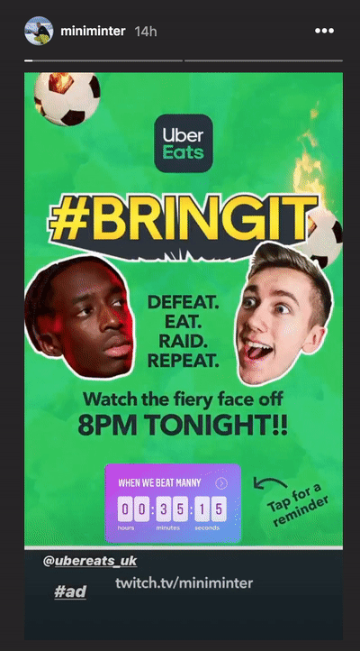 Teaming up with top streamers Manny and Miniminter we used the Twitch ‘Raid’ feature to surprise small scale streamers with a flood of new viewers, support and free Uber Eats vouchers to literally bring them food. The emotional reactions, tears and laughter were priceless, but the ‘Raids’ were only part of a pre-promotion leading to an epic finale. A FIFA showdown between Manny and Miniminter, where followers played alongside. The winning team got Uber Eats vouchers, while the losers faced a spicy hotwing challenge live on stream.